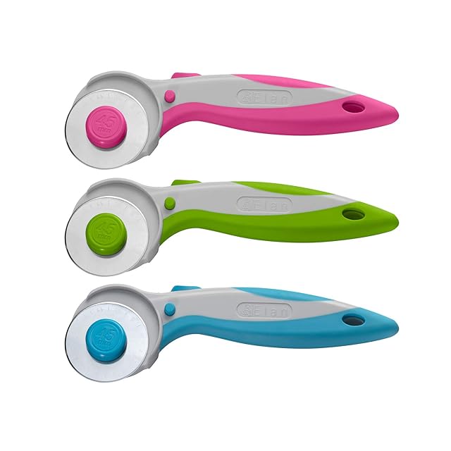 ELAN ピンクロータリーカッター - 布用カッター、ソーイングロータリーカッター、45mmロータリーカッター刃、キルティングツール。使いやすく、右利きでも左利きでも安全。グリーン、ブルー、ピンクの3色展開。