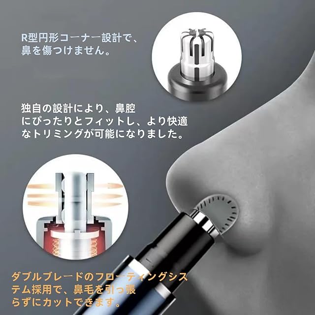 【男性におすすめの安心設計】 鼻毛カッター メンズとして、鼻の内部にフィットする小型ヘッドと、肌を傷めない安全な合金刃を採用。はな毛カッター 男性ユーザーも安心の、すばやくなめらかなトリミングを実現します。