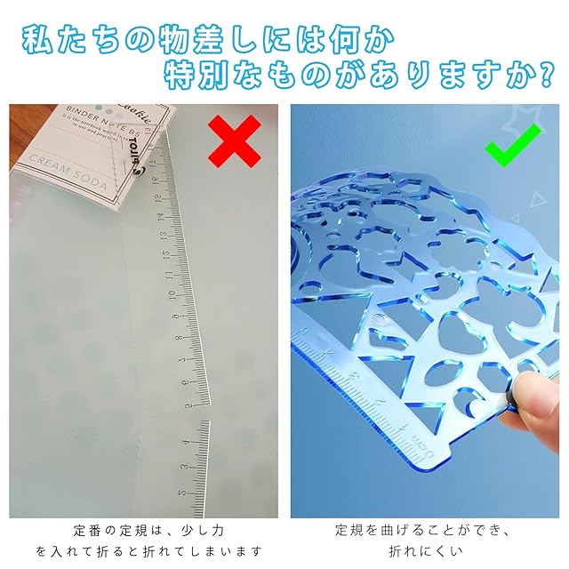 【高品質の素材】デザイン定規は高品質のプラスチック素材を用いて作られ、丈夫で耐久性があり、壊れにくいです、細かい細工、軽量、滑らかな表面、無毒無害です。丸くて滑らかなエッジはあなたの手を傷つけません。水洗いが可能ですので、繰り返しご利用できます。