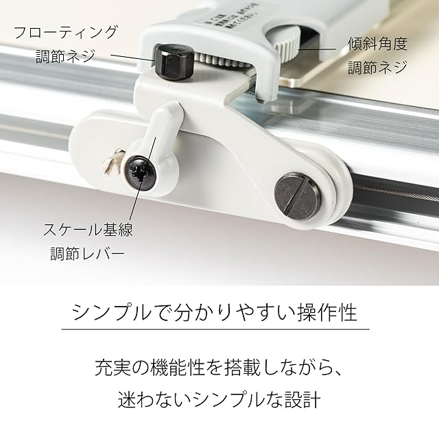 製図板左側の2連の溝に沿って、スライド定規が滑らかに移動します。