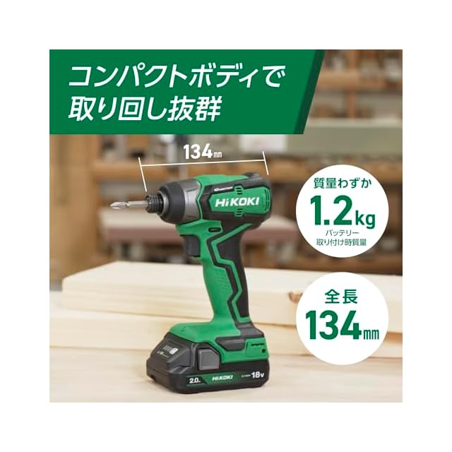 【.co.jp限定】HiKOKI(ハイコーキ) 18V インパクトドライバー WH18DD 初回修理 2.0Ahバッテリー2個、充電器、ケース付 電動ドライバー WH18DD(2BG)