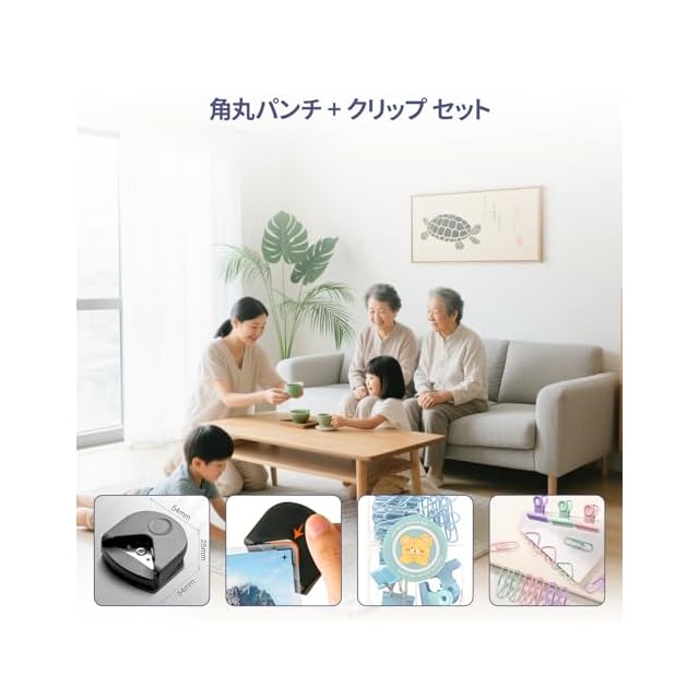【付属工具ですべてをカバーするオールインワンな機能性】 紙切りだけでなく、角丸めパンチと金属製ペーパークリップが付属。写真の角丸加工、グリーティングカード、製本ドキュメントの作成までこなします。クラフト、オフィス作業、学校の課題、スクラップブッキングなど、あらゆるシーンで活躍する万能ツールです。