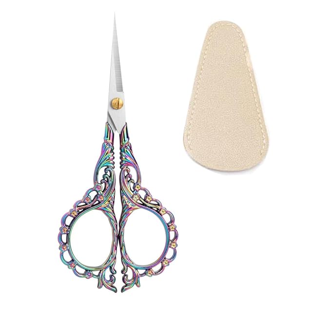 レトロ小さい裁縫はさみ、紙、刺繍道具用、アウトドア便利、バルク、DIY、装飾、革製ケース付き (幻彩)