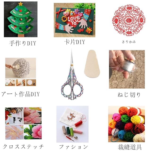 DIY・装飾用: DIY作品やインテリア装飾に最適なはさみです。革製のケースが付いています。