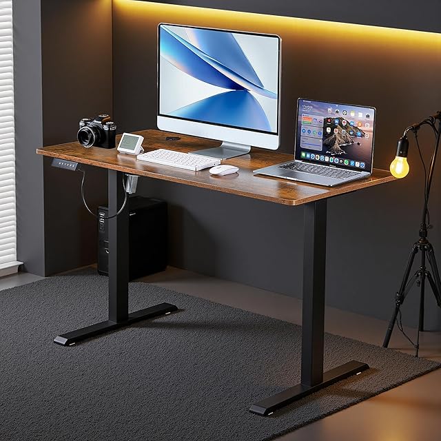 VECELO 昇降式デスク 電動 スタンディングデスク オフィスワークテーブル 幅120×奥行60×高さ70.5-113cm 高さメモリー機能 テレワーク オフィスデスク 在宅ワーク シンプル ブラウン