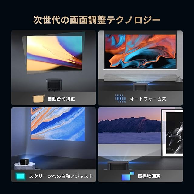 【面倒な手動投影操作は一切必要なし、起動即視聴】HORIZONは上下左右45度の自動台形補正と高速オートフォーカスを備えているだけでなく、壁面のスイッチや壁の絵、壁のコーナーまでを自動で回避できます。自動でスクリーン設置場所を識別でき、画面をスクリーンの端に合わせます。僅か6秒で起動する高速起動に対応。テレビのように使用が可能です。