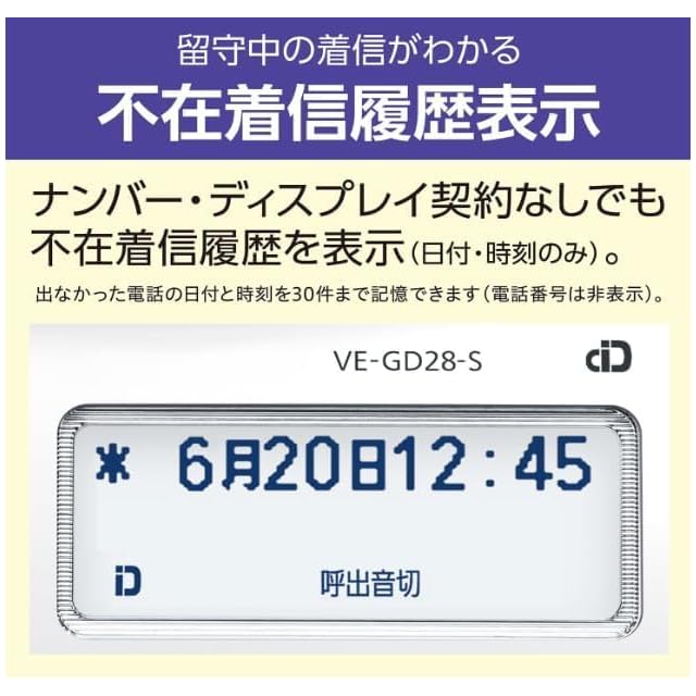 VE-GD28DL-S(子機一式ワンセット付き)に子機本体×1・充電台×1・電池×1を追加したセットとなります。(子機合計2台となります。)<br> <br> <br> 視認性の高いホワイト液晶(親機・子機)&見やすくなったダイヤルキー(親機)<br> 呼出音が鳴る前に相手に警告メッセージを流す「迷惑防止」機能搭載<br> ナンバー・ディスプレイ契約なしでも不在着信履歴を表示(日付・時刻のみ)<br> <br> <br> ✅買ってきてすぐに迷惑防止機能が使える(初期値有効)<br> ✅落ち着きがあり、高級感のあるシルバー塗装<br> ✅非通知、公衆電話、海外からの着信拒否にも対応<br> ✅メッセージやチャイム音を流して切り時を作る通話拒否<br> ✅女性の声を男性のような低い声に変えるボイスチェンジ<br> ✅着信時に相手に名前を名乗ってもらうあんしん応答