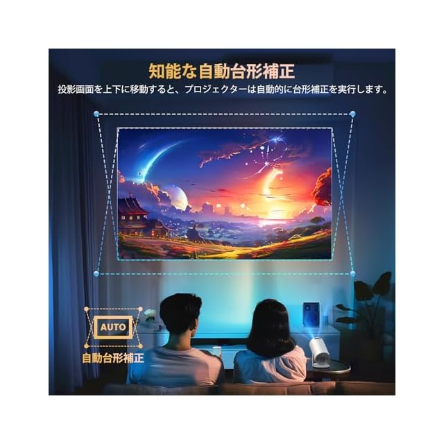 商品名:YOWHICK プロジェクター 家庭用【Android TV搭載・APP利用可能・270°回転】プロジェクター 小型 22000LM 1080P Wi-Fi6 4K対応 天井投影 自動台形補正 Bluetooth5.4 HiFiスピーカー内蔵 ホーム 50%ズーム機能 スマホ/ノートパソコン/DVD/Switch/などに対応 操作簡単 日本語取扱説明書