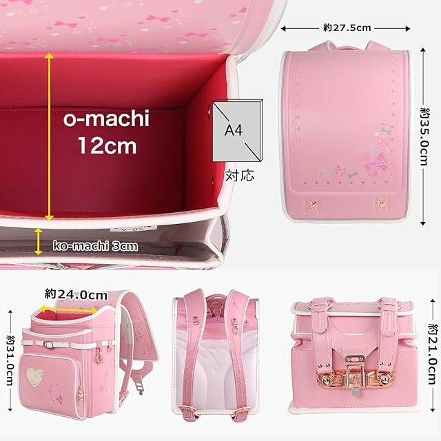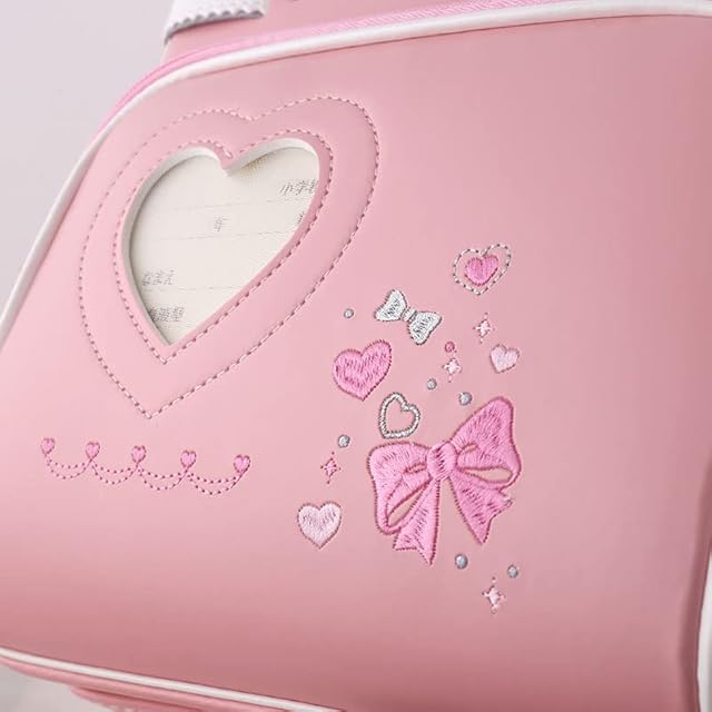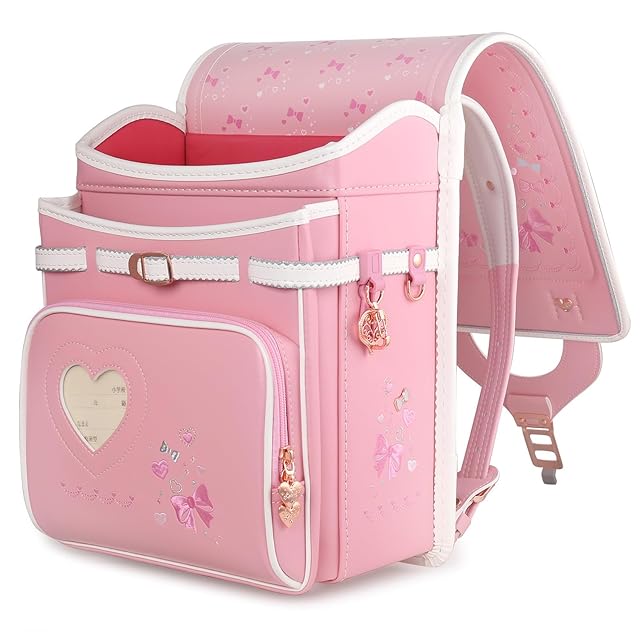 [Coulomb] クーロン ランドセル女の子小学生通学カバン 高級人工皮革パール生地 ワンタッチロック ハート&蝶結び刺繍 贩売者6年 透明ランドセルカバー シューズ袋など特典進呈 (104P)