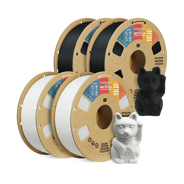 OVERTURE マット PLA フィラメント素材 1.75mm アップグレード版 3Dプリンター フィラメント, マット PLA 4KG スプール Matte PLA フロステッドテクスチャー (Black*2+White*2)