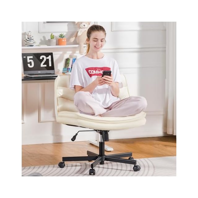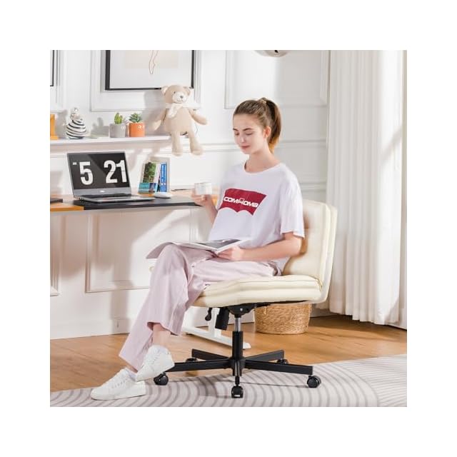 COMHOMA デスクチェア あぐら ソファチェア オフィスチェア Beige 疲れない椅子 90°~130°ロッキング角度 肘掛けなし 座面広い ホイール付き回転 10cm高さ調節可能 PUレザー 軽快な小型のソファ 一人掛け 小さなスペース PUレザー