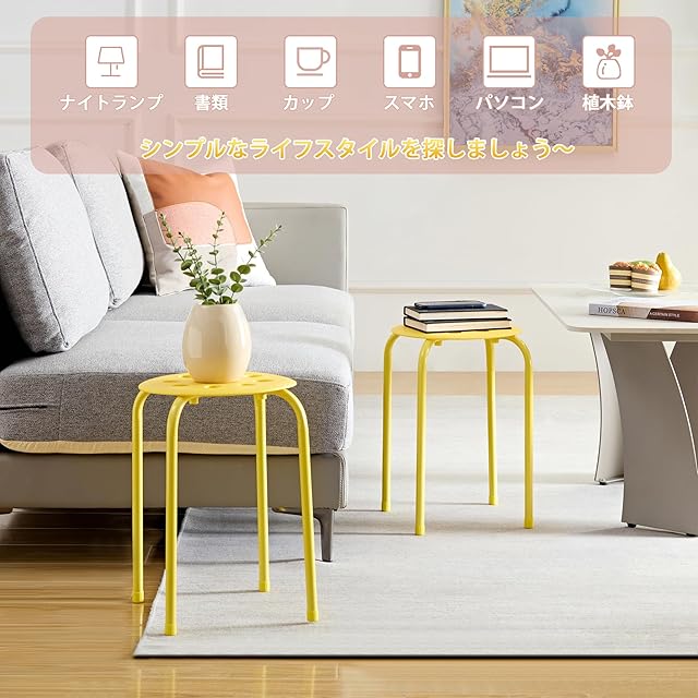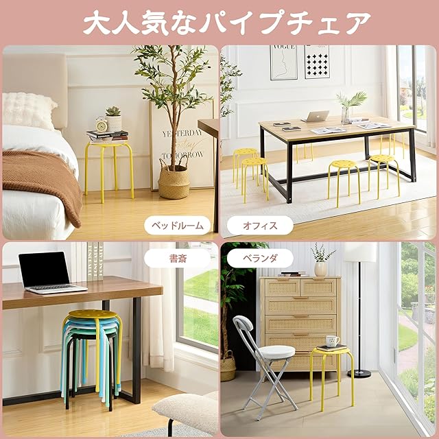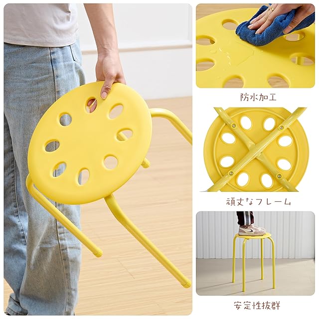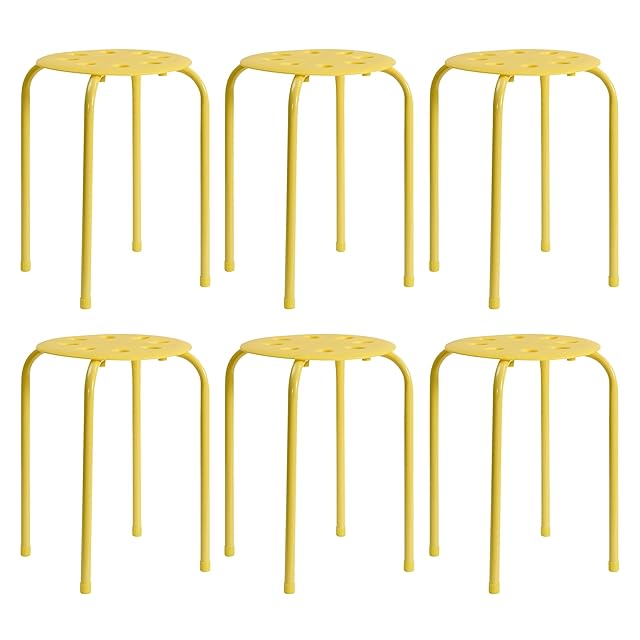 VECELO 丸イス パイプ椅子 6脚セット 幅30X奥行30X高さ45cm スタッキング シンプル 軽量 携帯便利 積み重ね スツール 頑丈 通気 腰掛け 完成品 防水 食卓椅子 オフィススツール ダイニングチェア イエロー