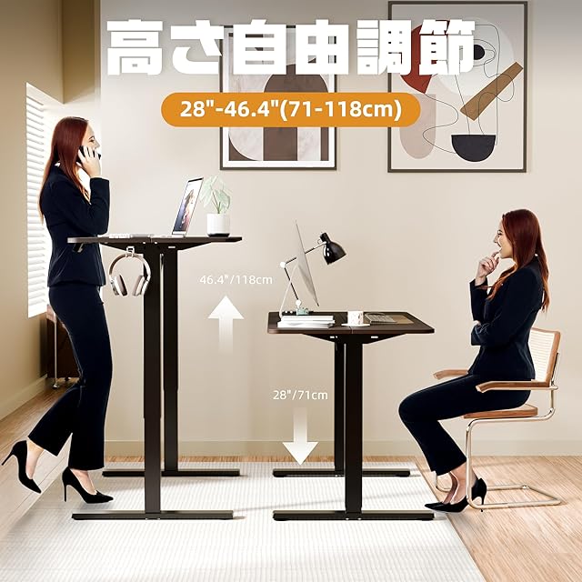 「昇降機能」 この電動昇降デスクは、先進の昇降システムを搭載しており、簡単なボタン操作でデスクの高さを調節することができます。スタンディングデスクとして使用したり、昇降式のゲーミングデスクとして利用したりすることができます。ワンタッチで切り替えられるので、快適で自由な作業体験を提供します。上下昇降範囲71-118CM。