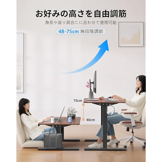 【静音設計&衝突検知でさらに安心】高性能モーターによるスムーズで静かな昇降動作は、深夜の作業やオフィスでも音を気にせず使用可能です。さらに、障害物を検知して自動停止する衝突感知センサーを搭載。不意の接触によるトラブルやケガを防ぎ、安全性もバッチリ。安心して日々の作業に集中できます。