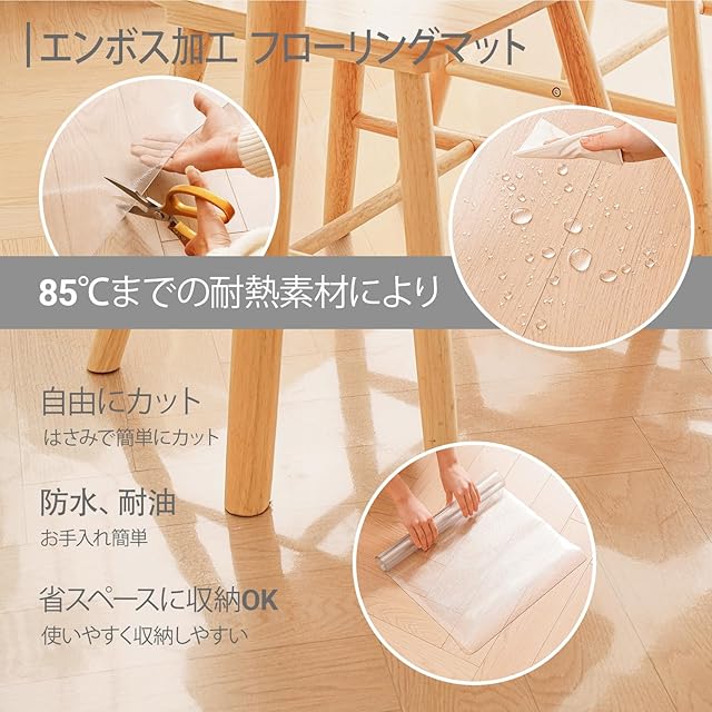 透明 エンボス加工 チェアマット フロアマット 応用範囲: このフロアプロテクエンボス加工 ターはハサミで簡単にカットでき、必要に応じて自由にカットできます。畳カーペット、フローリング、オフィスに対応します.もちろん、キッチンや食卓、ペットのケージ周りなど幅広く使えます!自然な光沢感でインテリアの雰囲気を損ないません。