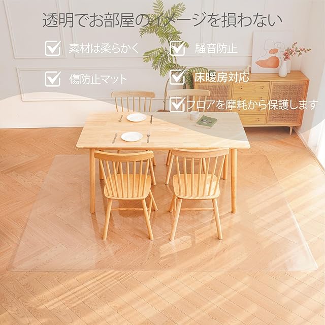 床保護マット 透明 材質:超大判 ダイニングマット クリア 新世代のアップグレードされた PVC 無毒、人体にやさしい素材を採用. 透明性が高く、味がなく、 傷や汚れから保護できます.