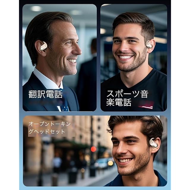 【耳を塞がない、空気の振動で音楽を】この空気伝導イヤホンは、骨伝導イヤホンの技術革新を受けて第2世代にグレードアップした新商品です。本製品は指定の方向に音を伝える技術を利用し、空気で音を伝えます。耳に入らないオープンイヤーデザインという骨伝導イヤホンの特徴を生かしながら、「振動に慣れないしないと聴こえない」、「電力の消費が早い」、「本体が重たい」などの問題点を改善し、耳に優しくなります。また、外部の音を聞きとりやすい空気伝導型イヤホンのため、ランニング中など夜間の道も危険を察知しやすい。移動中でも車や自転車、人の足音などが聞こえるため安全で、駅や電車内でアナウンスを聞き逃しません。更に、音楽を流したままでも会話ができるので、買い物の際にレジでわざわざイヤホンを外す手間が省けます。メガネをかけていても快適に装着できるイヤホンです