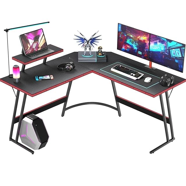 Victone ゲーミングデスク L字デスク「メーカー2年」 幅120cm パソコンデスク pcデスク L字型デスク パソコンコーナーデスク オフィスデスク 作業机 取外し可能なモニター台付き 省スペース 大型オフィスワークデスク カーボンブラック
