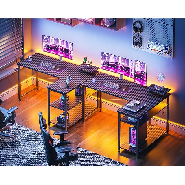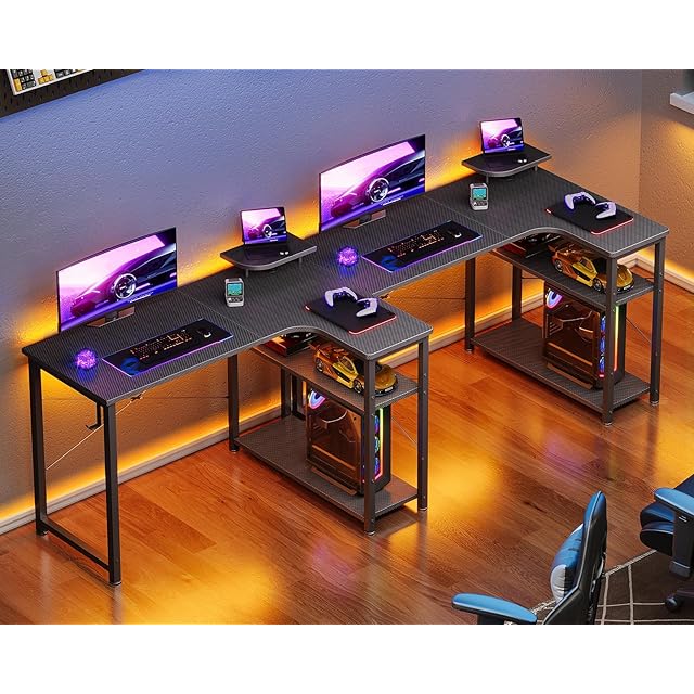 【ゲームと仕事両立】L字ゲーミングデスクは実用性が高く、ゲームプレイ、在宅勤務、勉強机、作業机など様々なシーンで大活躍!モニター台を利用して目線をあげることで、作業時の姿勢を改善し、テレワークが快適になり、作業効率も格段に上がります。