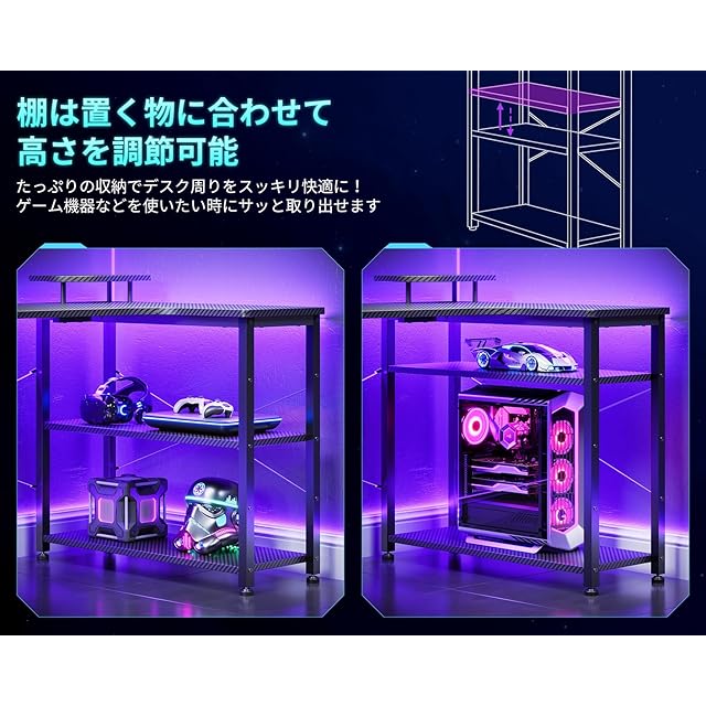 AODK パソコンデスク L字 ゲーミングデスク 幅90 ワーク l字デスク 机 pcデスク desk 棚付き 勉強机 オフィス 在宅勤務 桌子 作業机 組立簡単 右棚 カーボンブラック