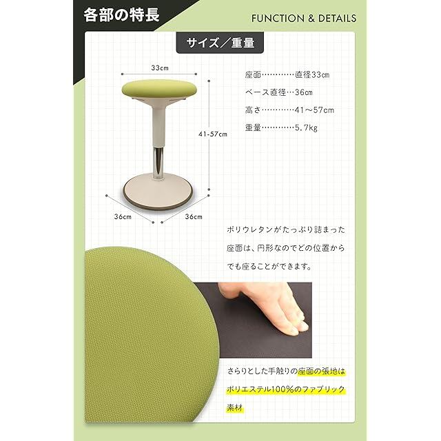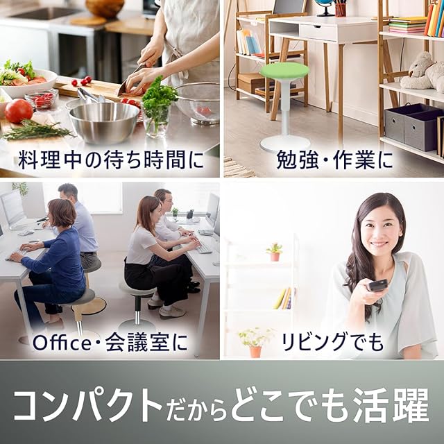 バランスチェア 姿勢矯正 グラッチェア デスクチェア オフィスチェア 高さ調整 腰ストレッチ 腰痛 椅子 完成品 コンパクトスツール 仕事 (グリーン)