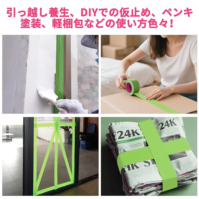 仮固定に最適: 台風などの災害時に家電製品や家具のガラス固定、外装材施工時のPEフィルム仮固定、建築作業の固定用としても利用可能。