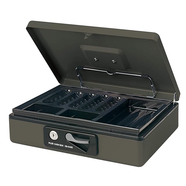 プラス 金庫 手提金庫 小型 W300×D240×80mm ダークグレー 13-126