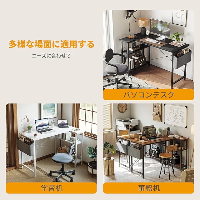 【商品仕様】省スペースのためにラック付きのl字デスク。◆本体サイズ:幅100×奥行70×高さ73CM ◆本体重さ:約14.5KG ◆お客様組立て品です
