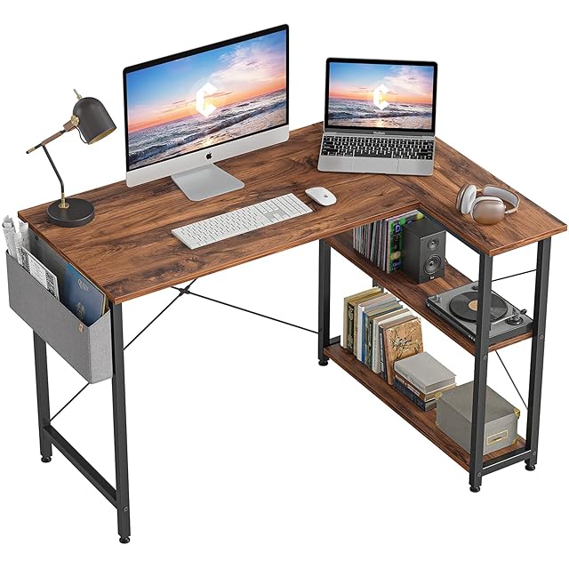 CubiCubi l字デスク デスク机 ラック付きデスク コーナーデスク 勉強机 パソコンデスク pcデスク l字デスク 省スペース 組立簡単 おしゃれ 幅100cm ディープブラウン