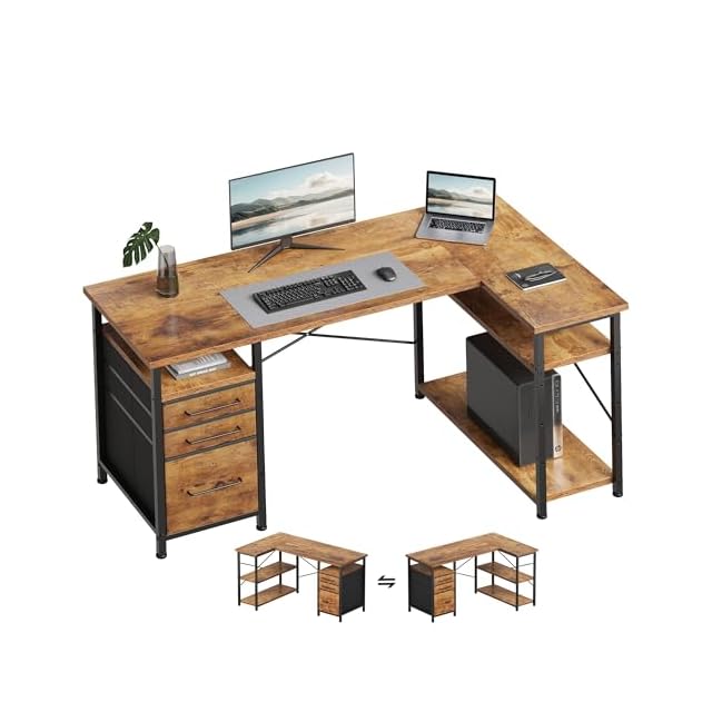 Maihail パソコンデスク l字デスク 机 勉強机 学習机 右棚左棚 幅120cm pcデスク コーナーデスク 本棚付き 引き出し付き 幅120cm ピンテージ