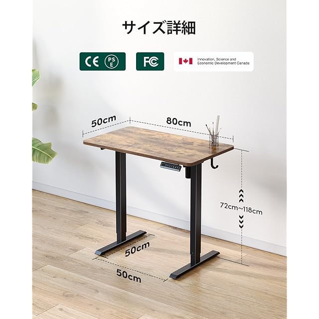 FEZIBO 電動 昇降デスク 一枚板 幅80cm 奥行60cm 高さ72-118cm スタンディングデスク 上下昇降 電動デスク 昇降式 ゲーミングデスク 4つメモリー機能 オフィスワーク スタンドpc机 ブラックフレーム/ブラウン天板