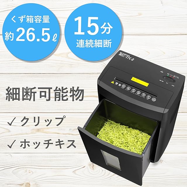 【細断枚数】17枚【くず箱容量】約26.5L【細断サイズ】約4×40mm(クロスカット)【定格時間】15分