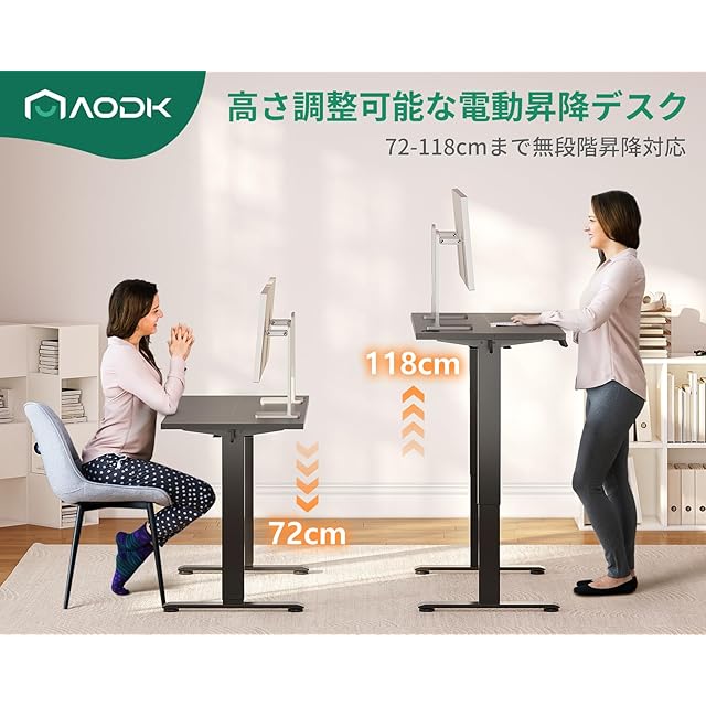 【無段階高さ調節可能・静音/簡単】デスクの昇降範囲:72~118cm;昇降速度:20mm/s;ちょうどいい昇降速度でより安全になる。 昇降音<55デシベル;静かな昇降音で夜ても使いやすい。使用方法:タッチするだけで好きな高さに昇降させ、姿勢と身長に合わせて高さ調整できます。電動式スタンディングデスクなので、立ったり、座ったり、理想の仕事やゲーム環境が構築できます。大人と子どもを両立できるので、家族にも最適です。