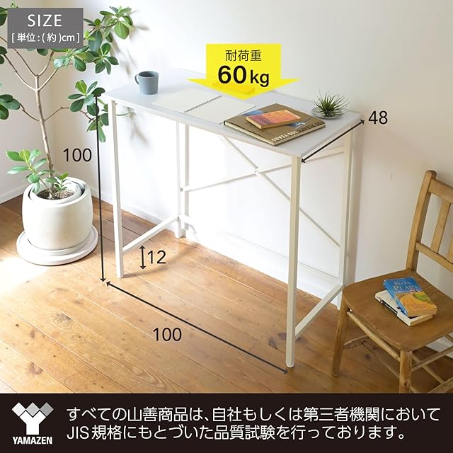 ●本体サイズ(約):幅100×奥行48×高さ100.5cm●甲板の高さ : 100cm●天板前端からコンセント前側まで : 40cm●天板後端からコンセントまで : 5.5cm●床からパイプ下まで : 12cm●天板厚み : 1.5cm●構造部材 : フレーム/金属(スチール)●甲板の表面材 : 合成樹脂化粧繊維板(塩化ビニル樹脂)●表面加工 : フレーム/エポキシ樹脂塗装●耐荷重 : 60㎏●素材:ポリプロピレン●東証(株)山善で扱うすべての山善商品は、自社もしくは第三者機関において、JIS規格に基づいた品質試験を行っております。