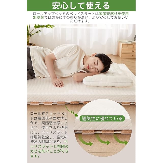 【便利なデザイン】日本のデザインチームが設計した機能的なすのこベッド。軽量で移動が簡単、収納用ロープ付きで持ち運びにも便利。来客用や旅行時にも活躍します。日本で設計し、中国の信頼できる工場で製造した高品質アイテムです。