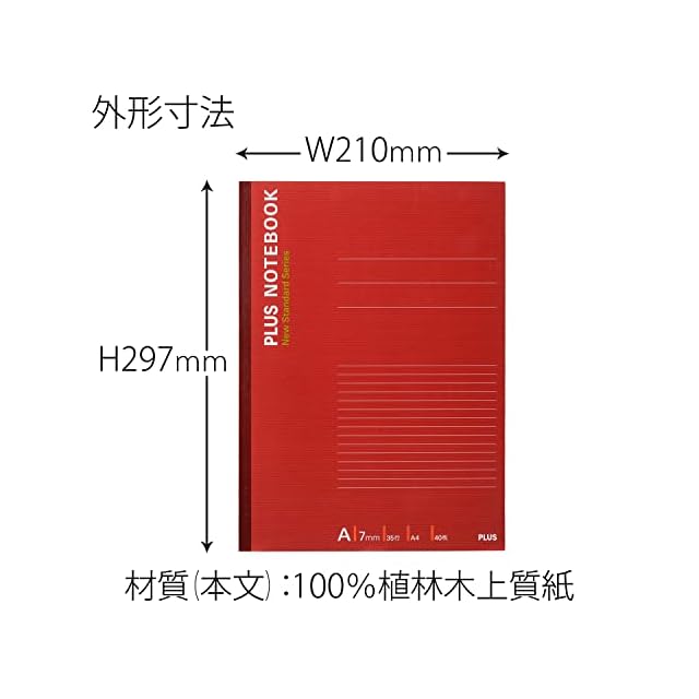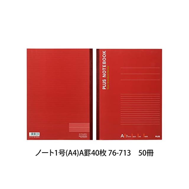 PLUS ノート A4 (1号) レッド 50冊 NO-204AS 76-713 ×50 A4・40枚・A罫(7mm幅)