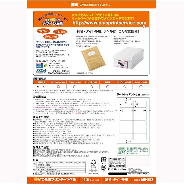 プラス ラベル いつものラベル FSC認証紙 角丸 12面 500枚 ME-502S 48-871
