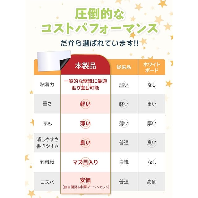 ✅【壁を元に戻せる粘着式】キズをつけられないオフィスや賃貸の壁にもオススメです。お子様の知育教材、冷蔵庫のメモ、プロジェクター投影スクリーン、家族の伝言板、ToDoリスト、伝言ボード、思考整理などあらゆる場面で活躍します。