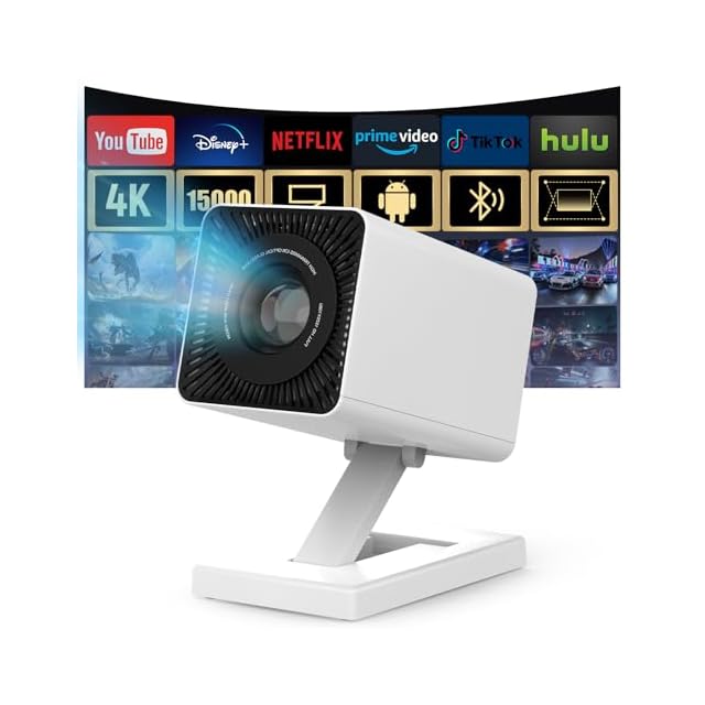 Maypug プロジェクター 家庭用 小型【Android TV・APP利用可能・4K対応】 1080P対応 高輝度 Wifi 6 Bluetooth5.4 内蔵スピーカー スタンド一体型 軽量 自動台形補正 天井投影 防塵 静音 短距離投影 180°回転 PC/PS5/Switch/FireTV Stick/DVD/USBなど対応