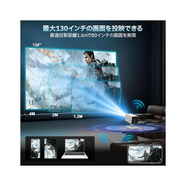 【幅広い対応・1年間付】PC、Switch、USBストレージ、PSゲーム機、スピーカー、ヘッドフォンなど、さまざまなデバイスと簡単に接続でき、ゲームや映画、プレゼンテーションなど、幅広い用途に対応。HDMI、USB、3.5mmイヤホンジャックを内蔵しており、シームレスな接続が可能です(HDMI接続ケーブルは別売りです)。本製品には1年間のが付いており、万が一プロジェクターに不具合が発生した場合は、メールにてお気軽に弊社までご連絡ください。また、日本語の取扱説明書が必要な場合も、カスタマーサービスまでご連絡いただければ、電子版をお送りいたします。