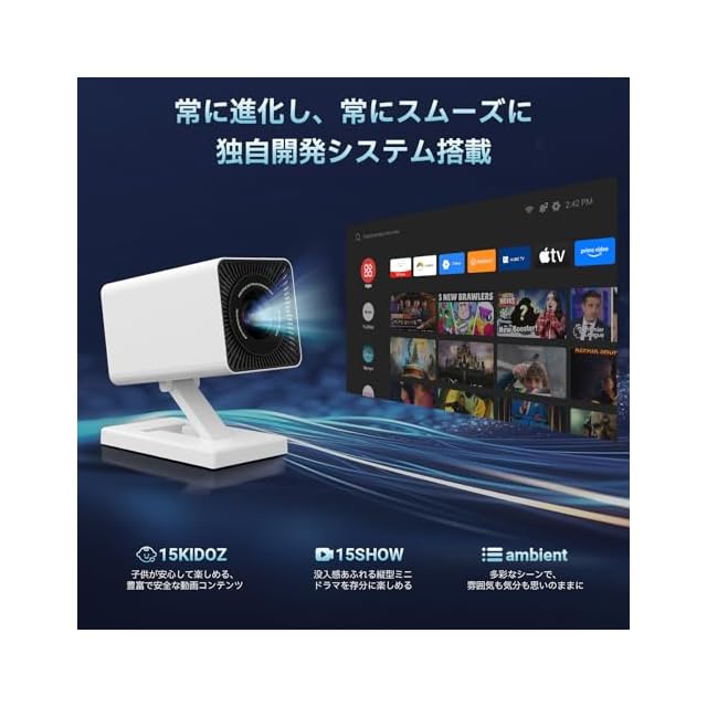 【8.19追加】家庭用ぷろじえくたーのシステムを最新バージョンに更新すると、子供が安心して楽しめる「15KIDOZ」動画アプリや、縦画面で没入感ある視聴ができる「15SHOW」英語ミニドラマアプリが追加され、豊富な映像コンテンツを無料で楽しめます。さらに「ambient(環境投影)」機能では、スマートフォンから写真や動画を送信し、壁を光とアートに満ちたダイナミックなキャンバスや季節・イベントに合わせた背景として演出可能。独自のシステムと継続的なコンテンツ更新により、常に進化した家庭シアター体験をお届けします。直感的でわかりやすいモバイルアプリ操作で、誰でも快適にコントロールできます。