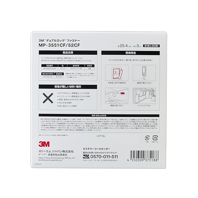 3M デュアルロック ファスナー SJ-3551CFとSJ-3552CFを組み合わせた個装品です。