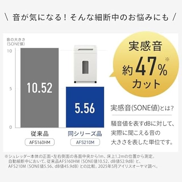 静音でノーストレス。運転音もより静かに。図書館と同じレベルの静けさで細断中も気になりにくい。