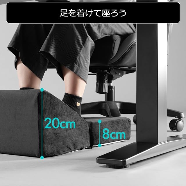 【デスク下をまるごとクッション化】幅70cm・奥行き50cmのワイド設計。前後左右に足を広げても余裕のあるサイズ感です。身体の力を抜いて、リラックスした状態で足を預けられます。