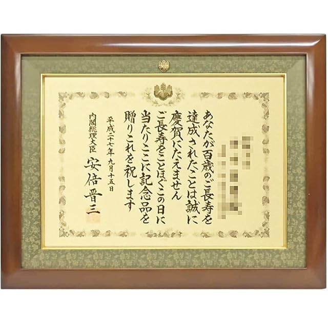 南洋サクラ材を使用した本格匠仕上げの高級賞状額。磨き上げられた艶のあるフレームが美しい額縁です。横向きの賞状に合わせて、上部に桐紋が付属します。政府関連の賞状など、桐紋付きの賞状にお使いください。布張りのマット材と高さのある金色の面金が、額装に奥行きと広がりをもたらします。賞状の周りが直接フレームとなるデザインの額縁とは、別次元の仕上がりをお楽しみください。褒章、もしくはB3と呼ばれる、用紙サイズ(365×515ミリ)の賞状が納まります。額縁に飾ったときの賞状の見える部分の寸法(窓抜寸法)は347×497ミリです。お手元の賞状の大きさをご確認ください。表面カバーは高品質な国産アクリルです。アクリルは室内紫外線の90%程度をカットし、賞状の日焼けによる退色を軽減します。横向きの吊紐金具・紐・賞状固定用の専用テープ・ダンボールのかぶせ箱付き。額縁の裏に紐は付属しておりますが、額受金具や額立てなどは飾る場所に合わせて別途お求めください。