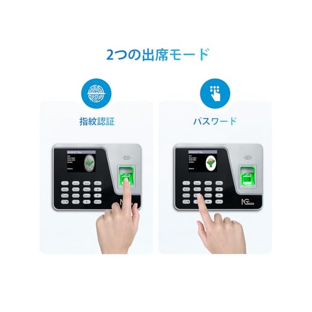 本製品は、小規模なオフィスや店舗、個人の考勤管理に最適な指紋認証タイムレコーダーです。最大500名のユーザーが登録可能で、50,000件までの出勤記録を保存します。指紋認証とパスワード認証の両方をサポートし、不正な打刻を防止しつつ、シンプルで迅速な出勤管理を実現。USB 2.0ホストポートで簡単にPCに接続でき、エクセル形式で出勤データをエクスポートして効率的に管理できます。2.8インチLCDスクリーンを採用しており、直感的で使いやすい操作性を提供。さらに、壁掛け設置が可能で、省スペースを実現しつつも、電源オフ保護機能を備えているため、データが失われる心配もありません。 業務用としてはもちろん、個人使用にも最適な本タイムレコーダーで、考勤管理をもっとスマートに、そして効果的に行いましょう。