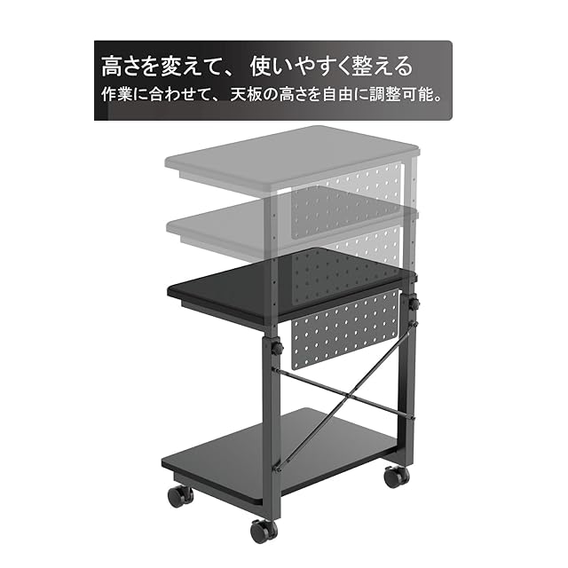 Alterzone 高さ調整可能 PCワゴン・パソコンラック キャスター&アジャスター付き ゲーミングPC・複合機対応 サイドデスク・プリンター台 袖机 パソコン収納 昇降式L字デスク PC置き台 移動便利 ブラック ALZ-CPU1