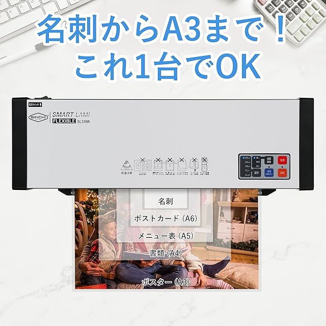SINCHI 業務用ラミネーター 名刺~A3対応|75~250μmフィルム・厚紙・濃い印刷対応|55秒高速起動・最大110cm/分|温度微調整&詰まり防止機能・高耐久|写真・書類・ポスターの長期保存に最適|オフィス・学校・店舗におすすめ