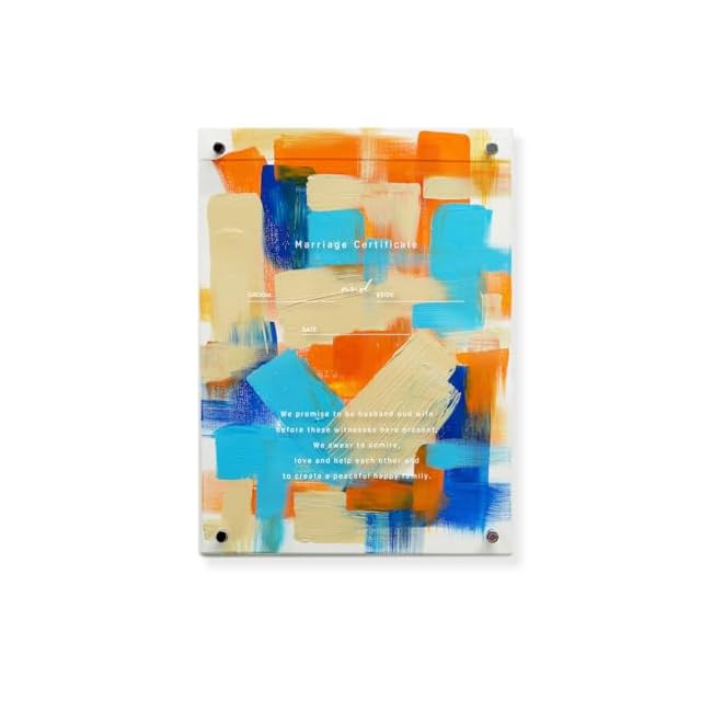 ゲスト参加型ウェディングキャンバス結婚証明書 名入れ ペイントキャンバス 軽量 割れない/LINSL 日本製 【 ブライダル ウェディング 結婚証明書 ノンフレーム 壁掛け 立てかけ ゲスト参加 インテリア モダン アクリル リンスル 】w0001 (A オレンジ×ブルー, F4サイズ(縦33.3cm × 横24.2cm))