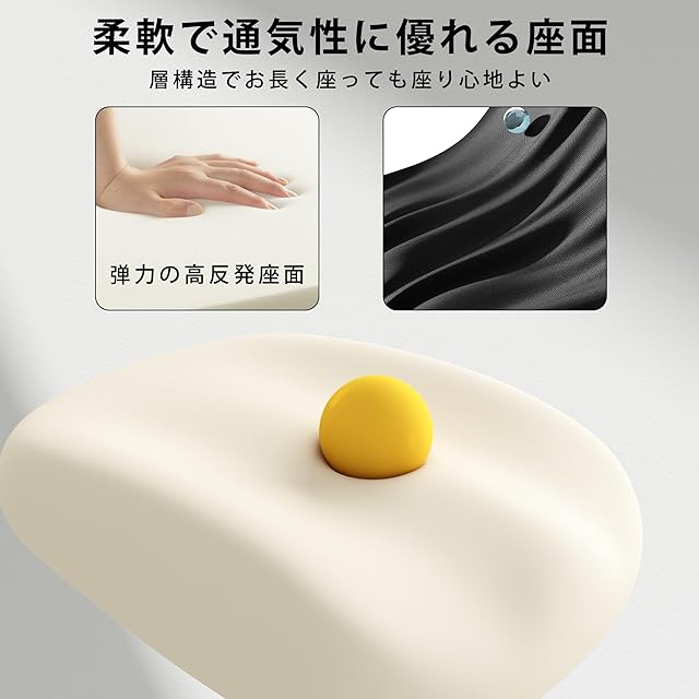 「通気性・快適さ」背もたれ・座面共に通気性に優れたメッシュ素材が使用されます。通気性の良い座面は、座り心地を良くし、一日中腰のストレスを感じさせません。クッションは厚いスポンジを充填し、ヒップと太ももを優しく包み込みます。また、厳選した素材は使用寿命を大幅に延ばします。